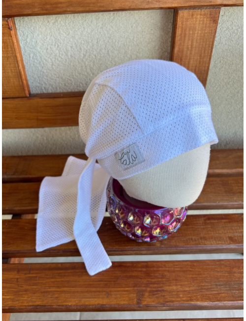 Dierkovaná, ľahká, vzdušná, úpletová šatka zo 100% bavlny. Šatka je dokonale vhodná pre detičky počas kúpania v lete. Vďaka štruktúre látky je šatka bezkonkurenčne priedušná, a preto je vhodná aj pre tie najviac potiace sa hlávky. Materiál je vhodný aj pre alergikov. Zadný širší dielik krásne schová krk a časť ramien pred slniečkom