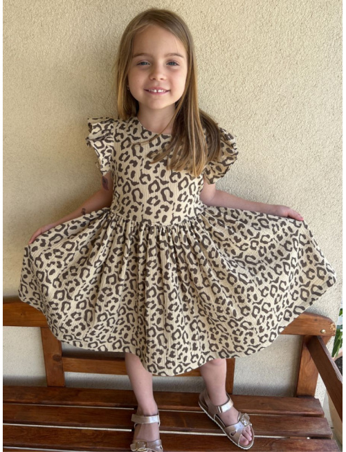 Šaty Valeriána - gázovina/mušelín - žirafa na pieskovej