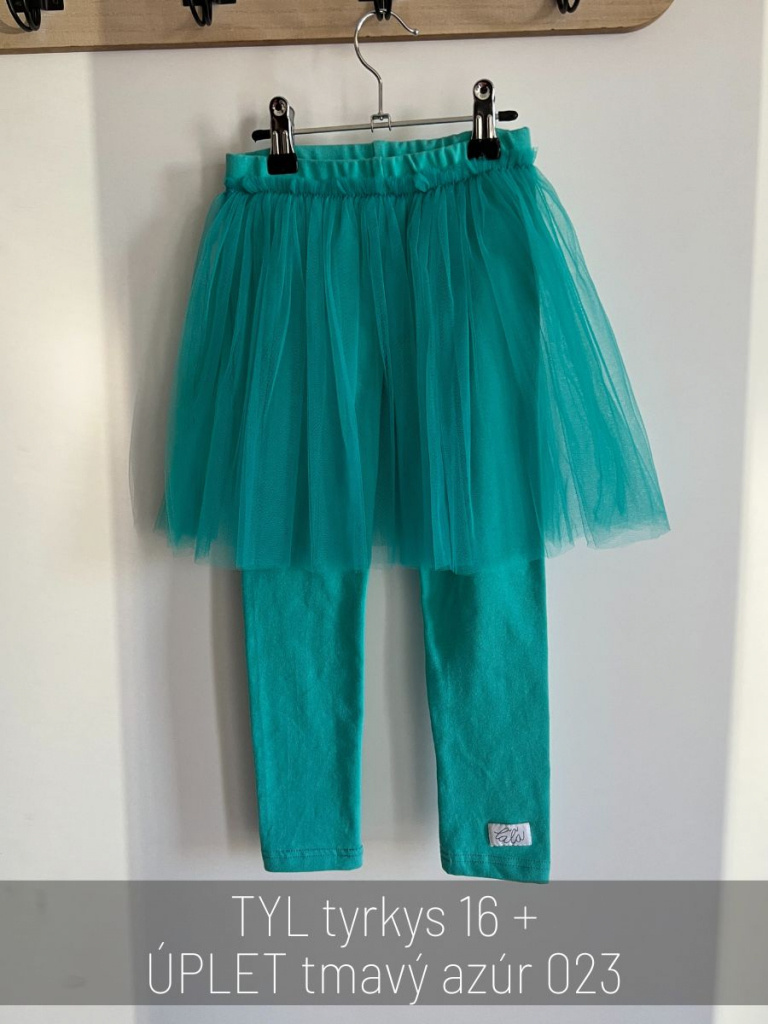 UPOZORNENIE: Okrem predvolených farieb, ktoré sú na fotkách, si môžete vybrať aj iné farebné kombinácie z nášho vzorkovníka - JEMNÝ TYL. Legíny s tylovou sukňou vo vami vybranej farbe vám s radosťou ušijeme. :)
