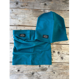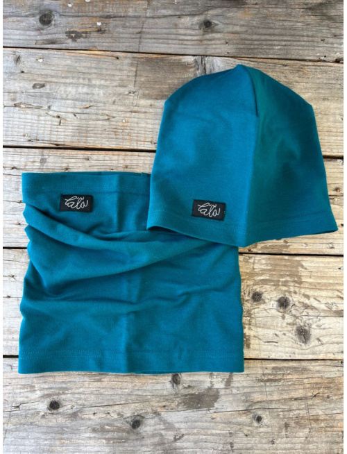 Príjemne elastický set tepláková čiapka v predĺženom strihu + tunel.