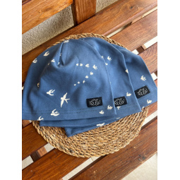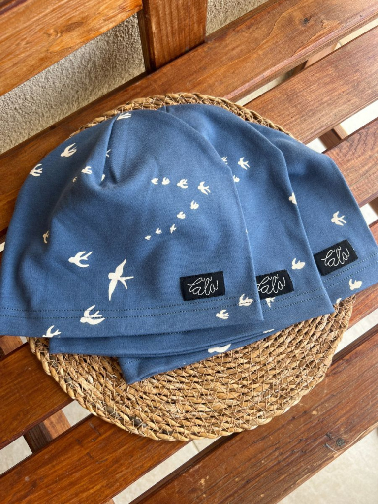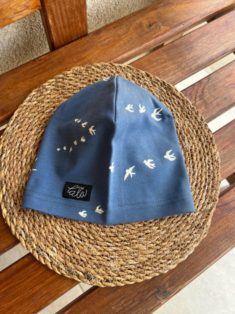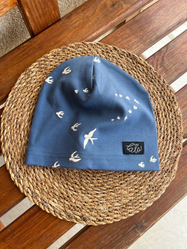 Úpletová šmolko čiapka - jednovrstvová - lastovička na modrej - LEN DO VYPREDANIA ZÁSOB