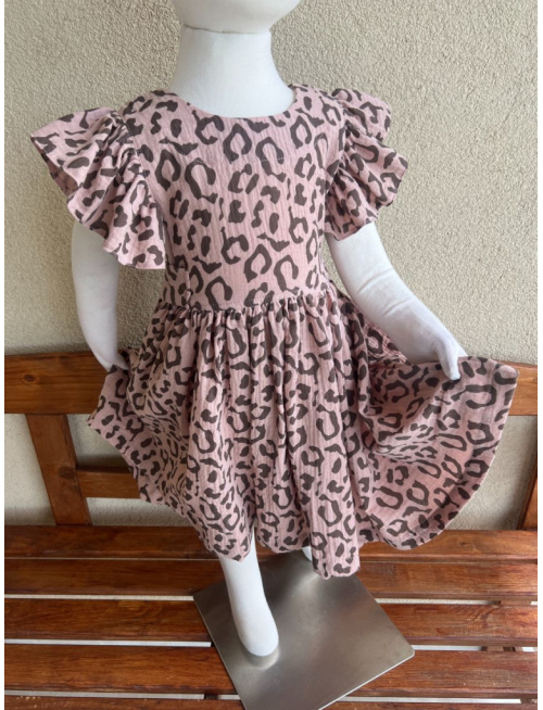 Šaty Valeriána - gázovina/mušelín - žirafa na svetlej staroružovej