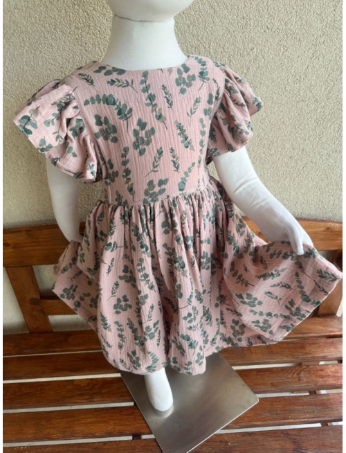 Šaty Valeriána - gázovina/mušelín - eukalyptus na svetlej staroružovej