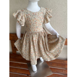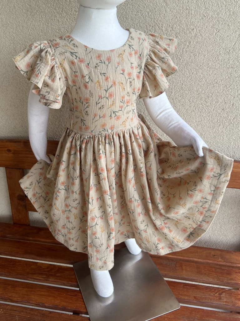 Šaty Valeriána - gázovina/mušelín - kvety na pieskovej