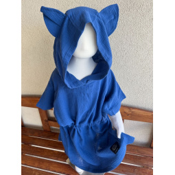Detské pončo vĺčik uši - kráľovská modrá - gázovina/mušelín