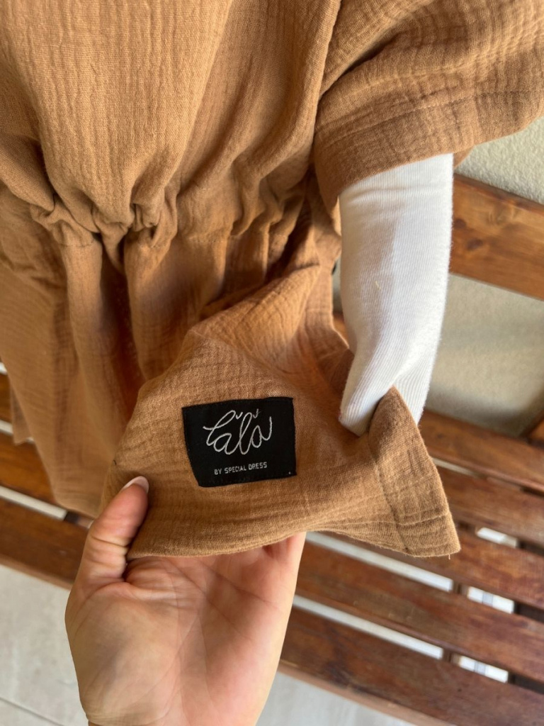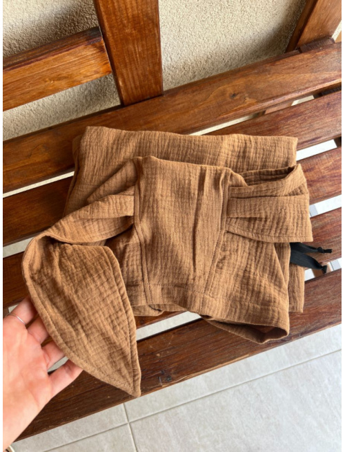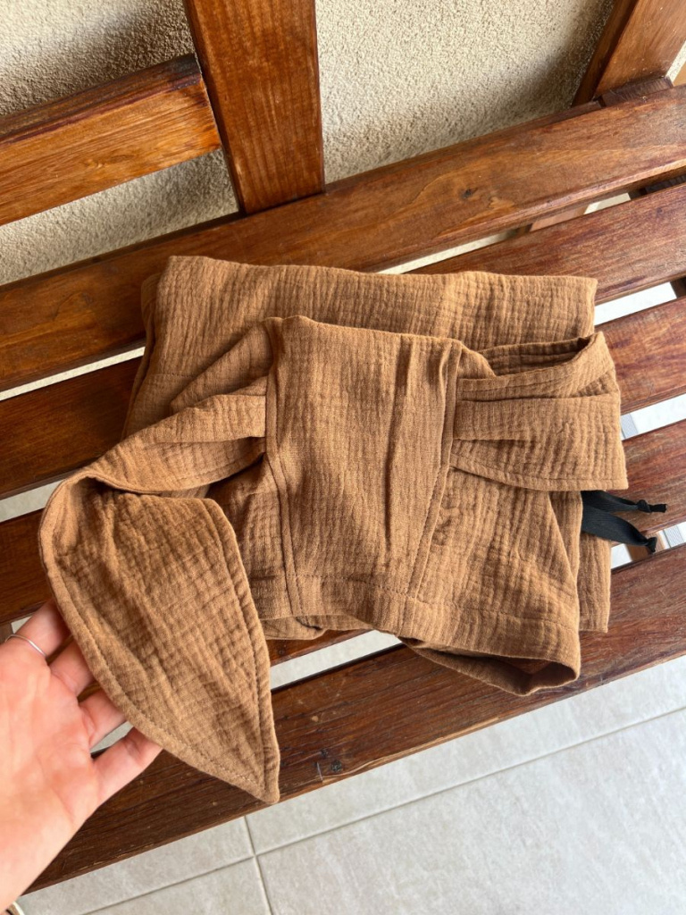 Detské pončo zajačik uši - karamel - gázovina/mušelín