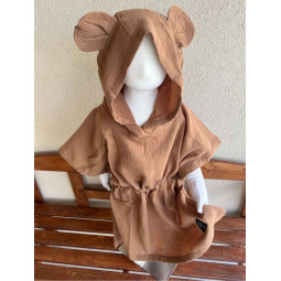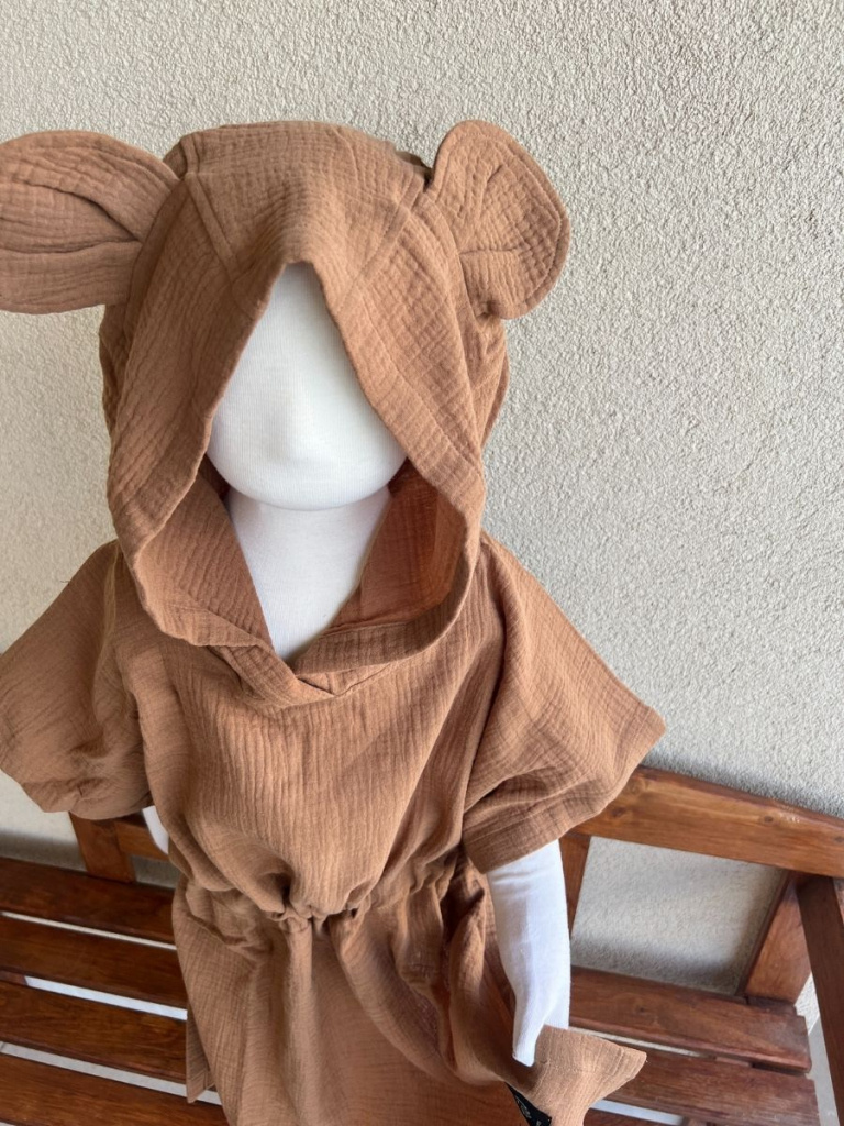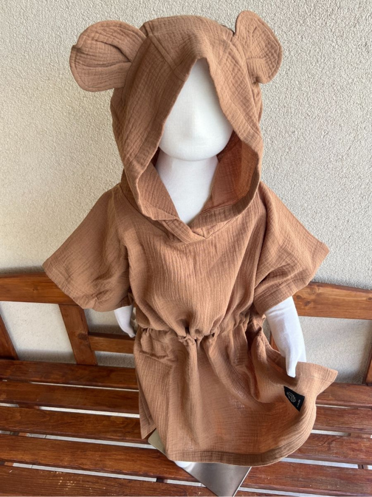 Detské pončo macko uši - karamel - gázovina/mušelín