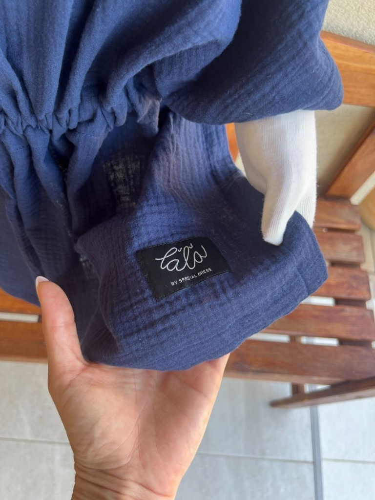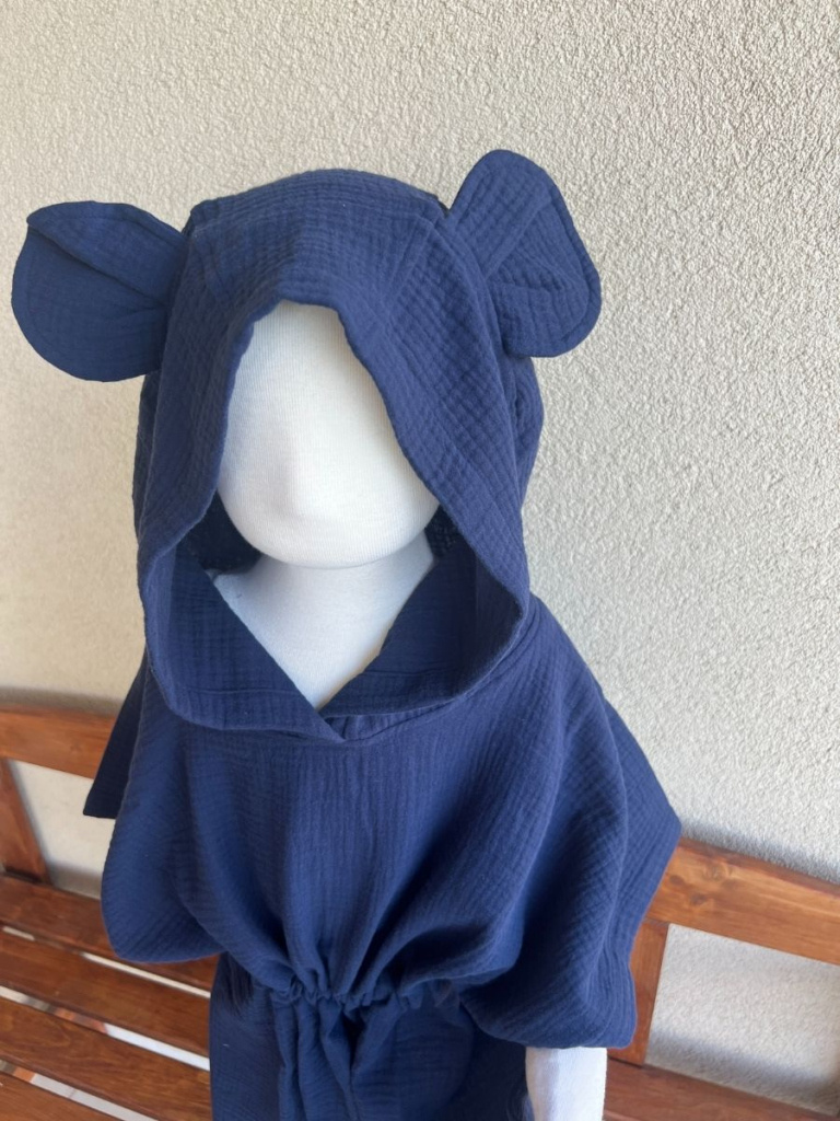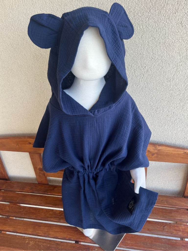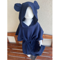 Detské pončo macko uši - tmavá modrá - gázovina/mušelín