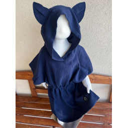 Detské pončo vĺčik uši - tmavá modrá - gázovina/mušelín