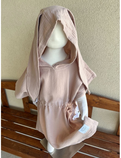Detské pončo zajačik uši - oriešková - gázovina/mušelín