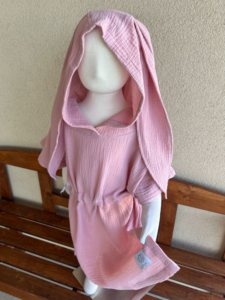 Detské pončo zajačik uši - svetlá staroružová - gázovina/mušelín
