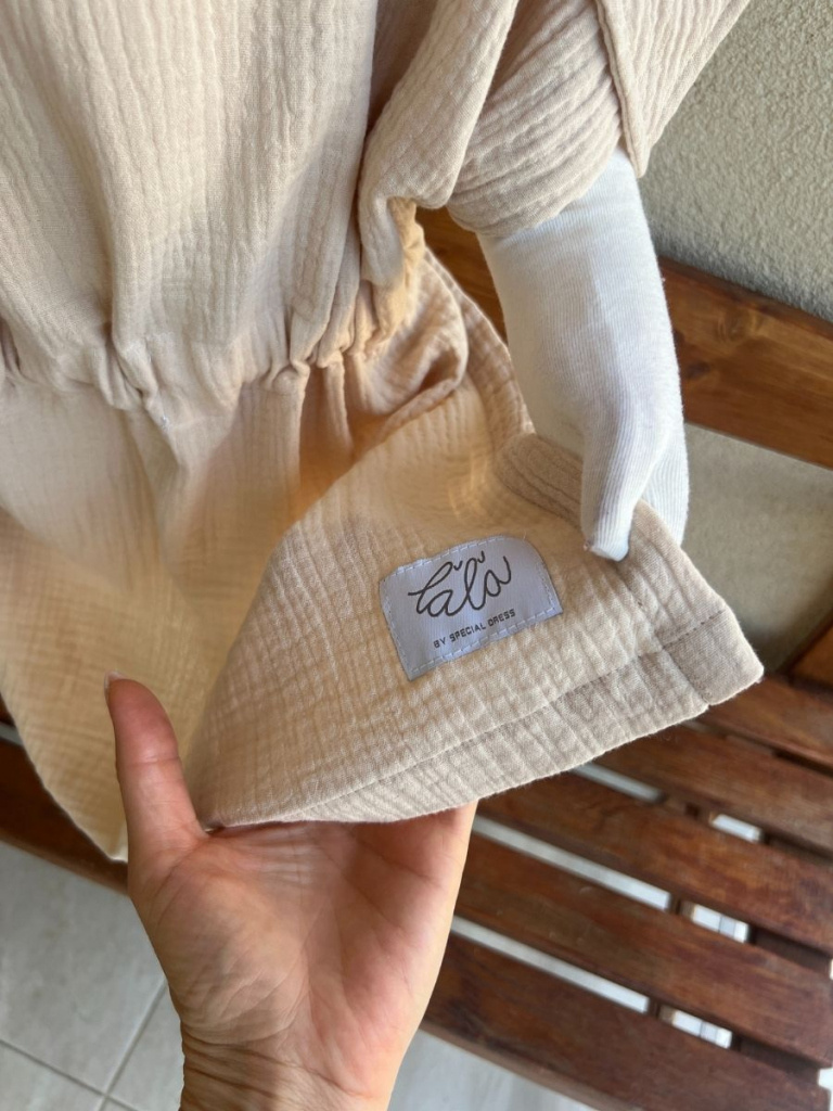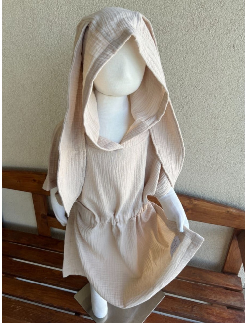 Detské pončo zajačik uši - nude - gázovina/mušelín