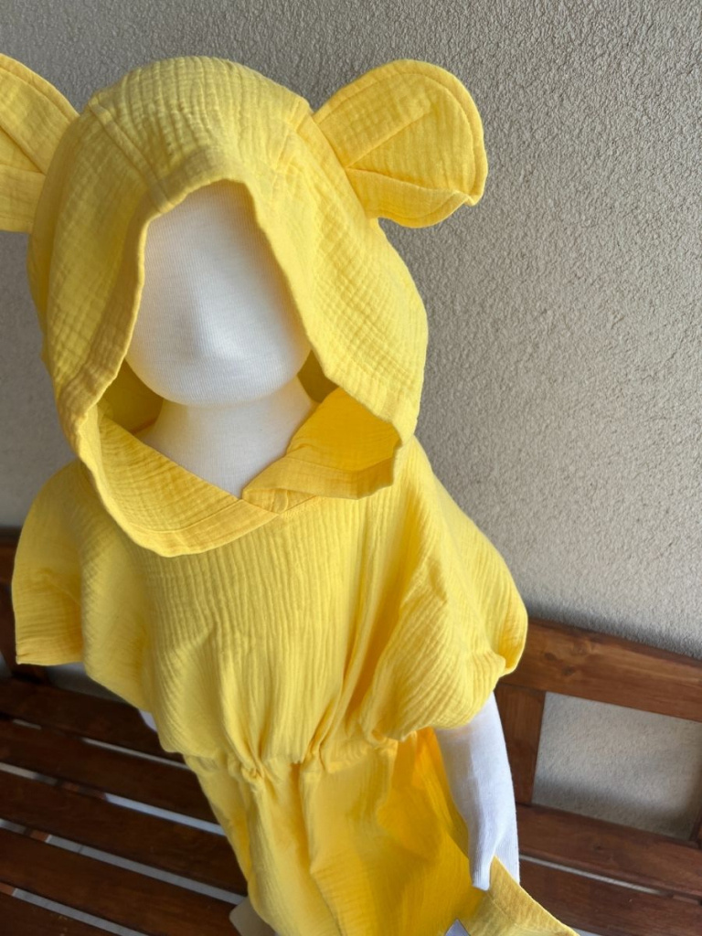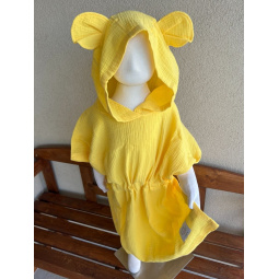 Detské pončo macko uši - slniečková - gázovina/mušelín
