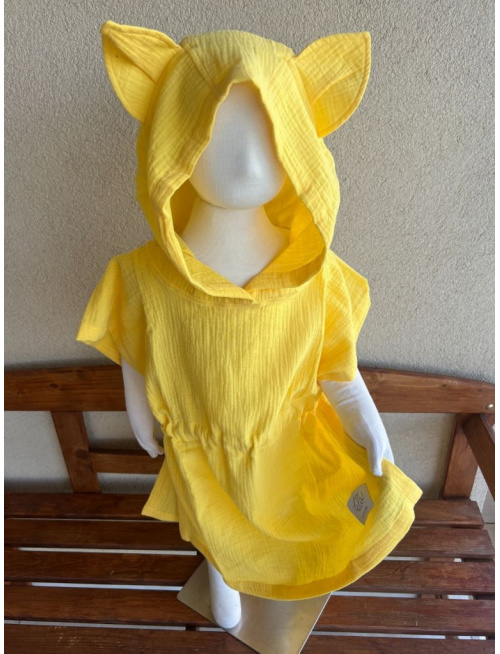 Detské pončo vĺčik uši - slniečková - gázovina/mušelín