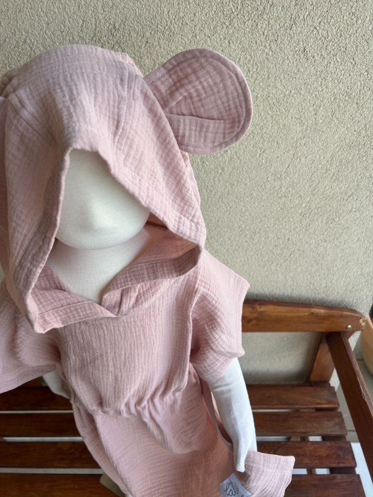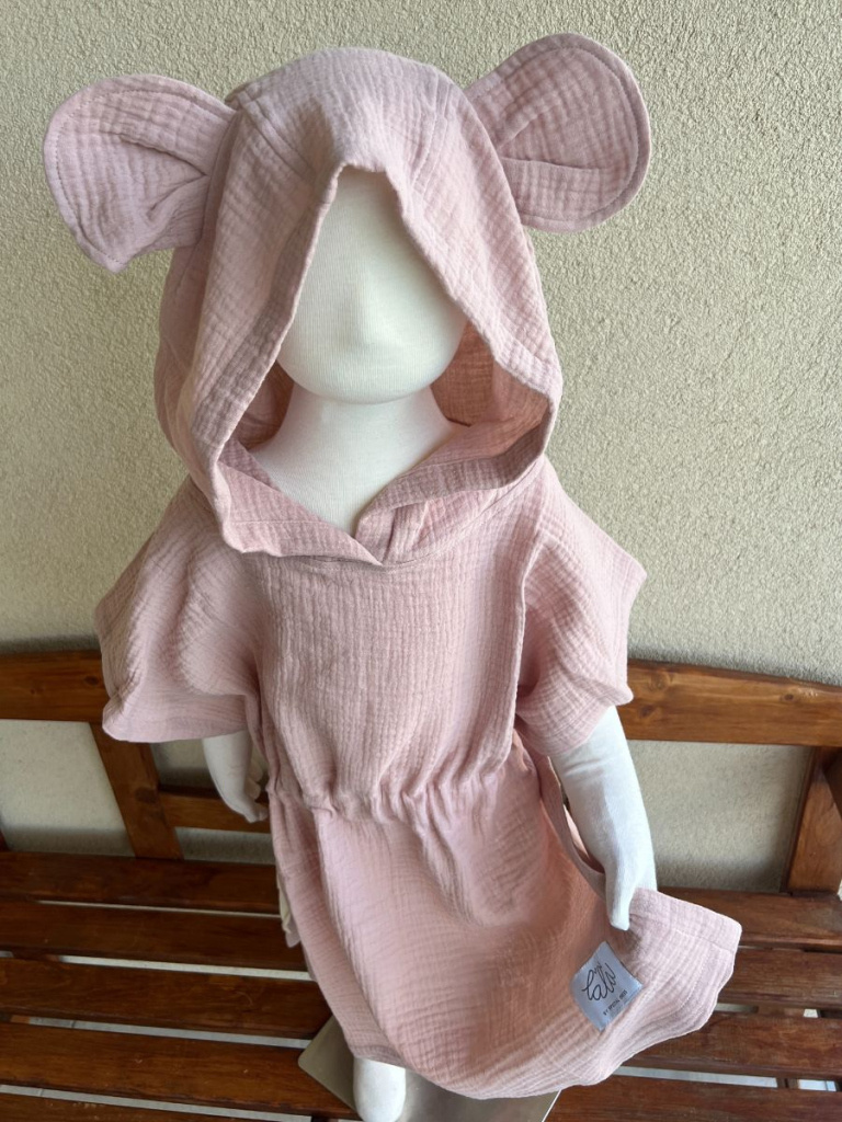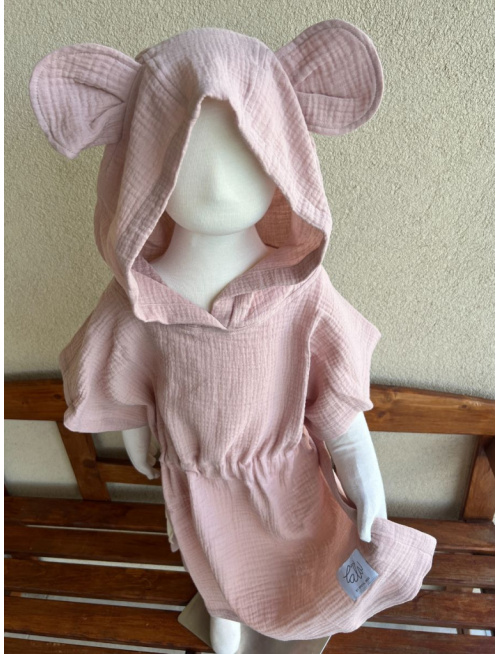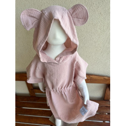 Detské pončo macko uši - telovo ružová - gázovina/mušelín