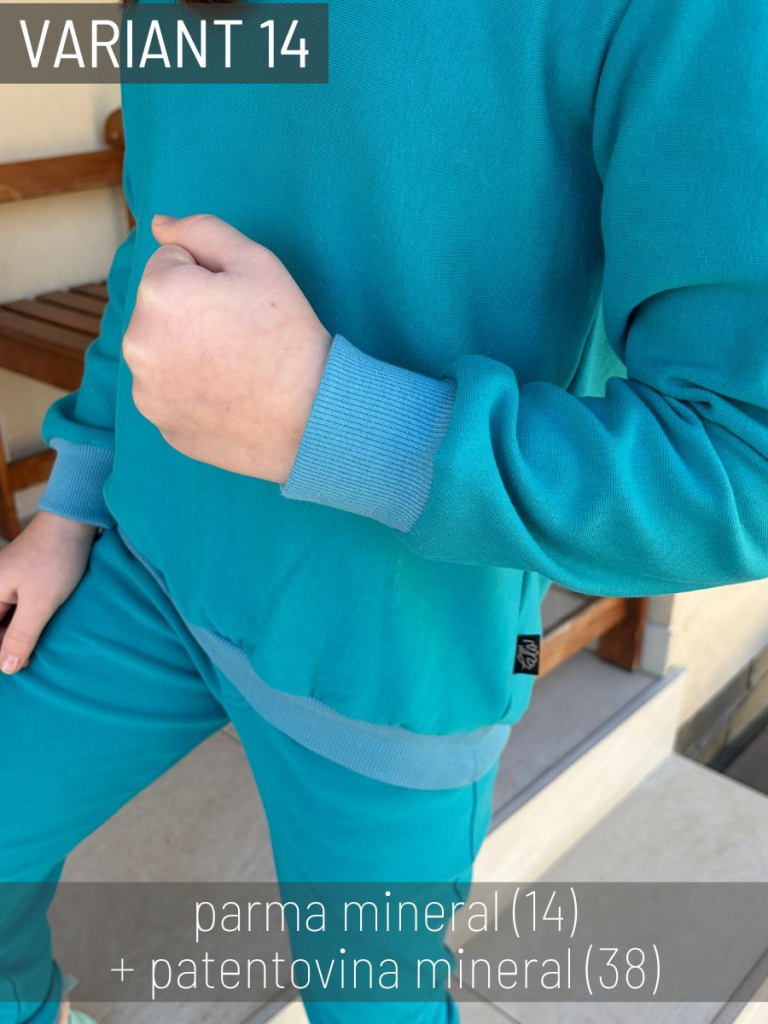 Materiál PARMA má veľkú výhodu v tom, že ide o čisto bavlnený materiál, vysoko elastický, z vnútornej strany má rozčesaný chlp, a tým je teplejšia od klasickej bavlny. Je to materiál hrúbkou medzi klasickou teplákovinou a warmkeeperom.