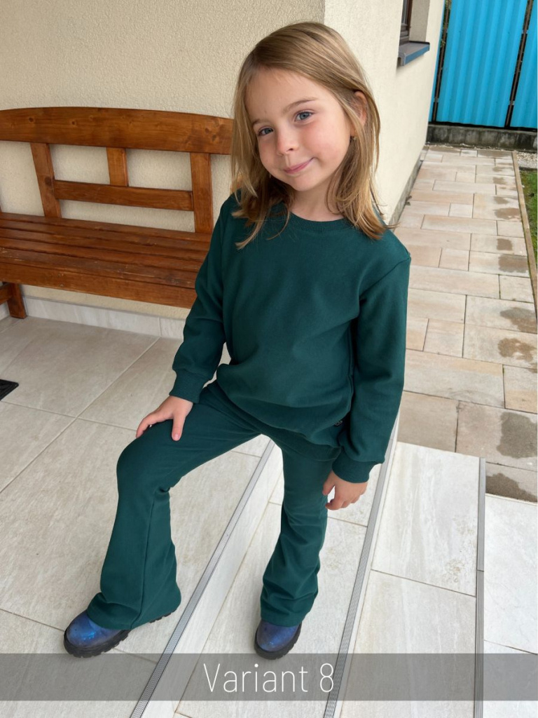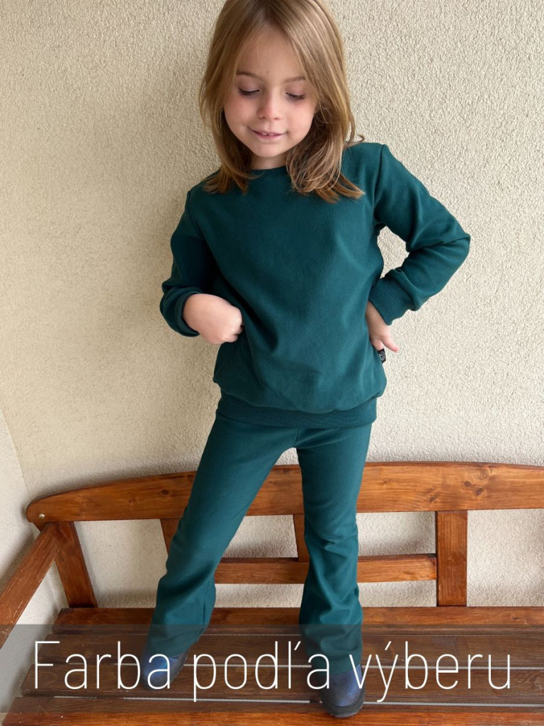 Poznámka k veľkostiam: Mikina sa šije v dvojčísliach (napr. 110/116, 122/128) a legíny v jednočísliach.