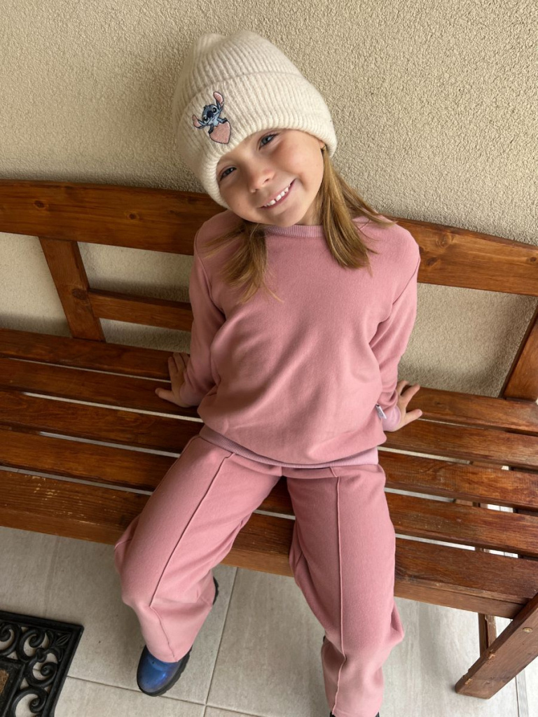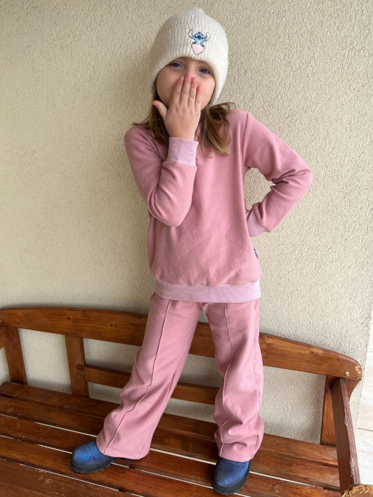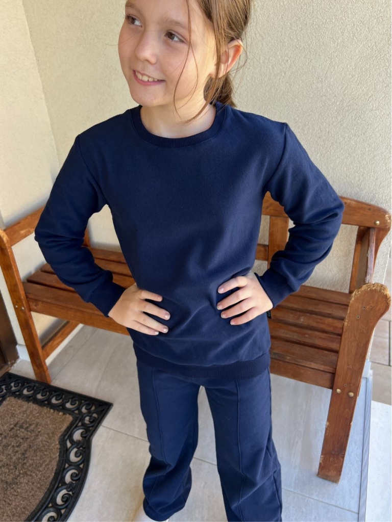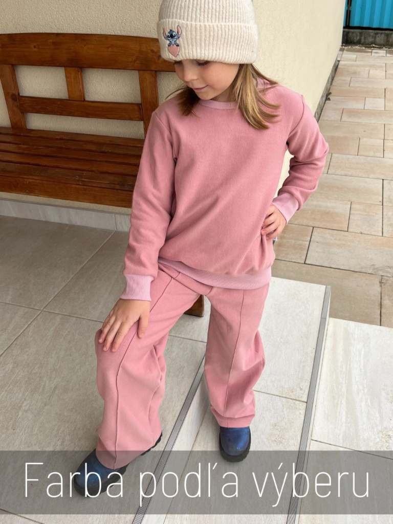 Poznámka k veľkostiam: Mikina sa šije v dvojčísliach (napr. 110/116, 122/128) a legíny v jednočísliach.