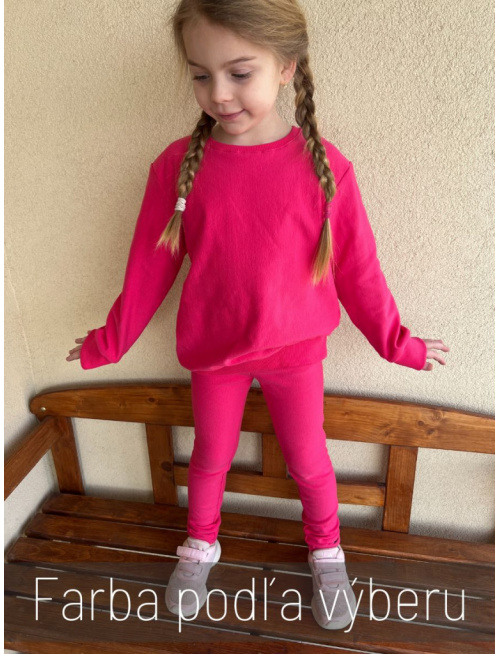 Poznámka k veľkostiam: Mikina sa šije v dvojčísliach (napr. 110/116, 122/128) a legíny v jednočísliach.