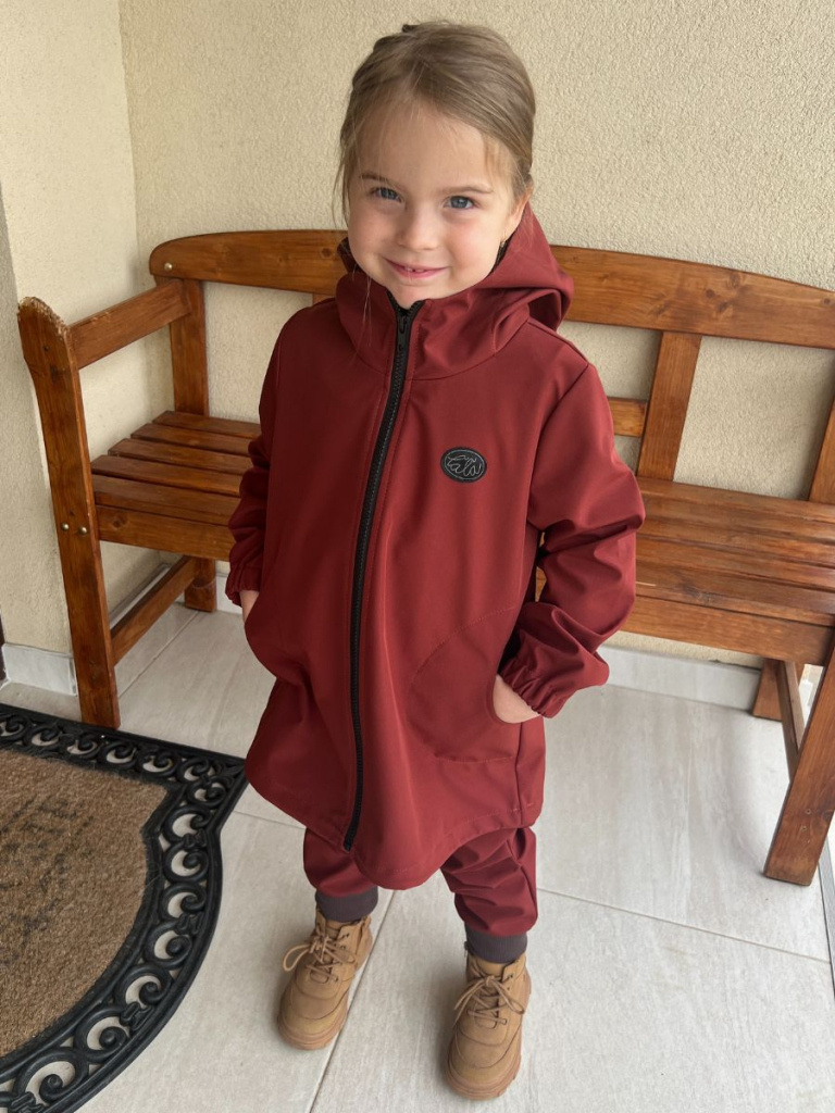 Prechodná sofshellová bundička je ušitá z jednej vrstvy jesenného softshellu. Je ušitá v praktickom predĺženom strihu s oválnymi funkčnými vreckami. Kapucňa je so stojačikom a šiltom, čiže parádne kryje krk pred vetrom. Je vhodná do sychravého daždivého počasia. Celá bundička je navrhnutá tak, aby poslúžila aj ako pršiplášť, a tiež ako štýlová bundička.