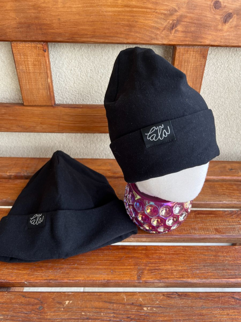 Parma čiapka s vyhnutým lemom - dvojvrstvová - čierna