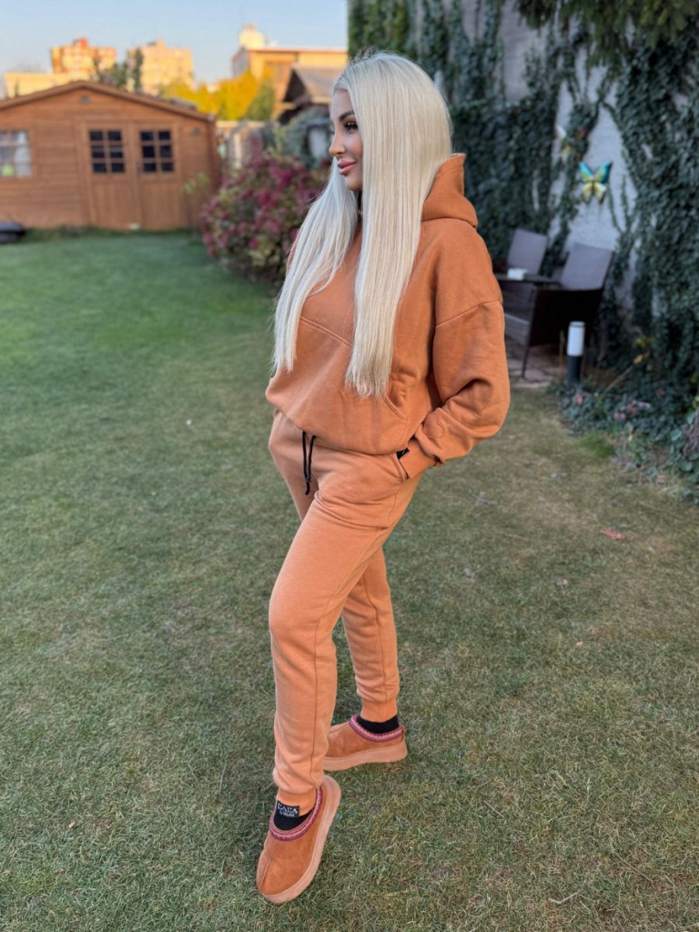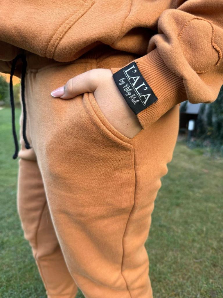 Nohavice z počesanej teplákoviny. Tento strih má rozšírený sed (ale nie pudlový), vďaka čomu sú tieto nohavuce maximálne pohodlné napriek tomu, že sú od kolien dole zúžené, ukončené manžetou z patentoviny. V páse je patentovina posilnená gumou a doplnená funkčou šnúrkou.