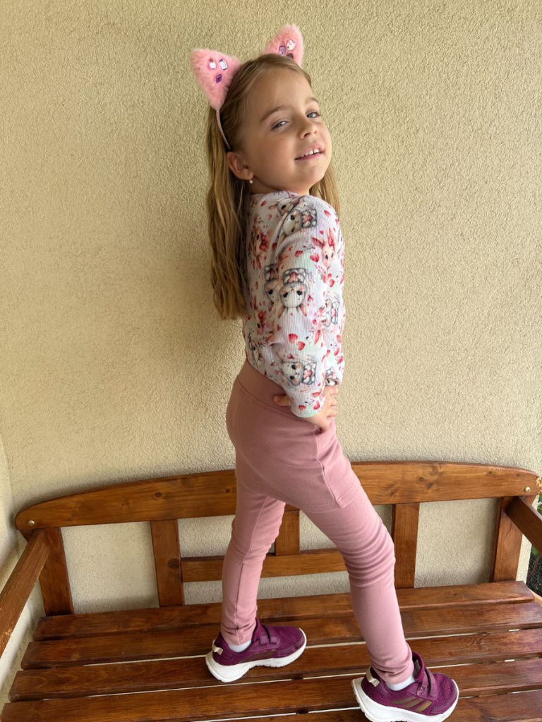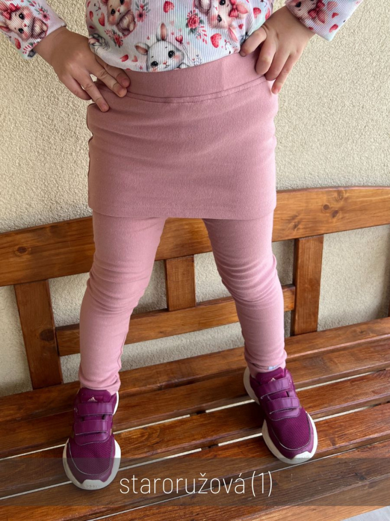 Elegantné legínky z materiálu PARMA s pridanou minisukničkou, ktorá je nie len pekná napohľad. Môžeme tu použiť prirovnanie "ovca celá aj vlk sýty" - slečna spokojná, že má na sebe sukničku a mamka, že má slečna dvojitú vrstvu na dupke. :)