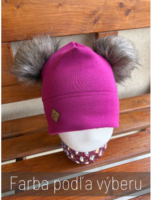 Obľúbená dvojvrstvová warmkeeper čiapočka s 2 bombuľami. Bombuľe ponúkame vo viacerých farbách podľa aktuálnej ponuky po telefonickej dohode. Zvonka je čiapka z nechlpatej strany warmkeepru a vnútorná vrstva je ušitá z chlpatej strany warmkeepru (warmkeeper POLAR). Čiapka je dostatočne teplá a vhodná na celú zimu. Tento strih je obľubený aj u dospelákov.