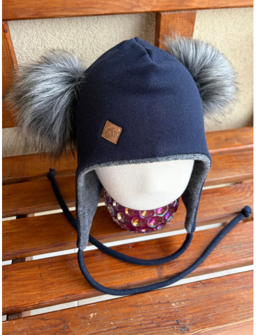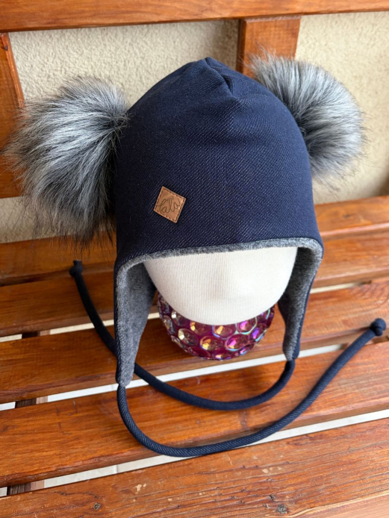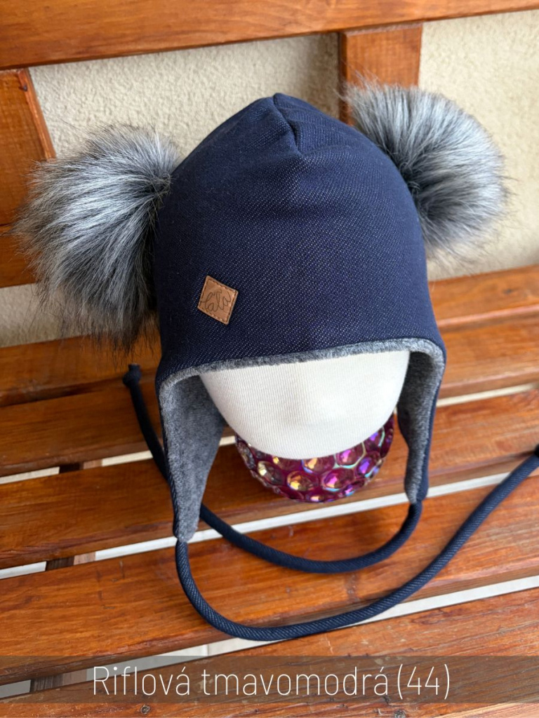 Warmkeeper ušiačka s 2 bombuľami podšitá warmkeeprom - dvojvrstvová - riflová tmavomodrá