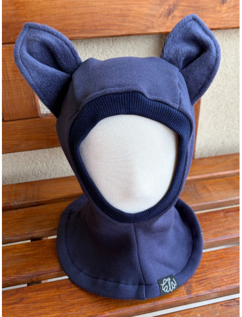 Warmkeeper kukla s uškami - MAČKA/LÍŠKA/VLK - temná modrá