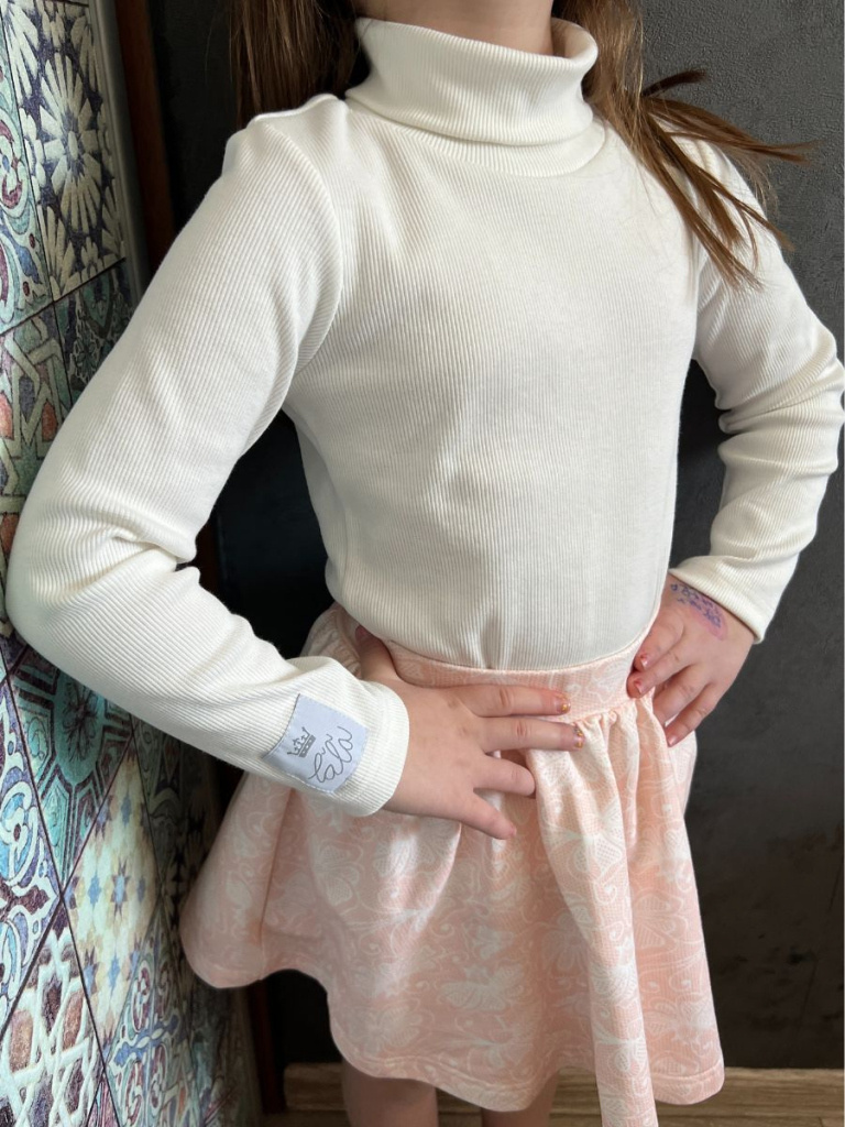 Roláčik ušitý z rebroviny. Strih je elegantný, tvarovaný pre slečny aj k sukničkám. Rukáv je ukončený elastickým stehom s elegantnou etiketou. Dolný kraj roláka je ukončený rovno bez predĺženia vzadu (narozdiel od verzie BOY).