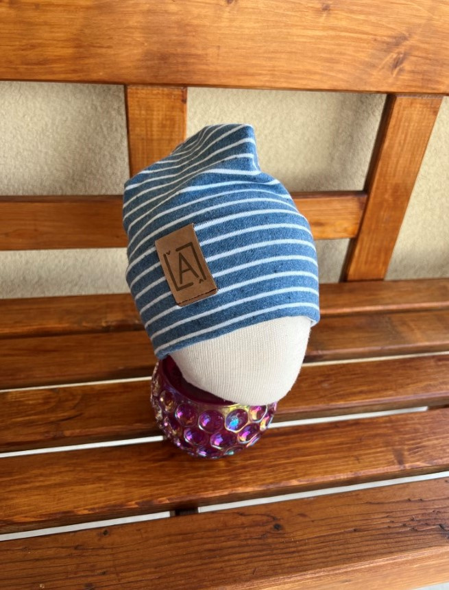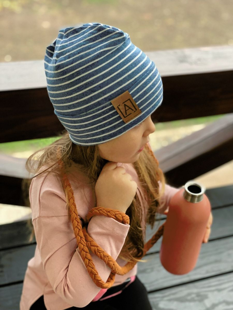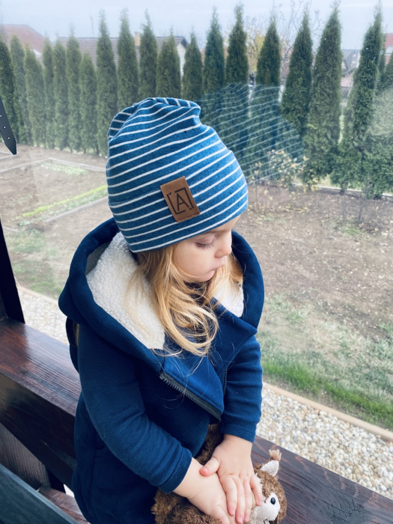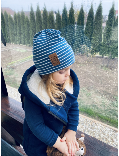 Žíhaná čiapka s vyhnutým lemom - kobaltová pásikavá