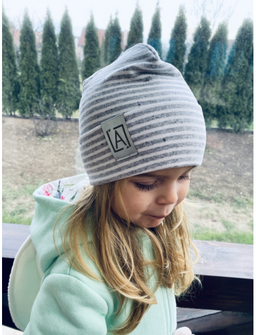 Žíhaná čiapka s vyhnutým lemom - sivá pásikavá