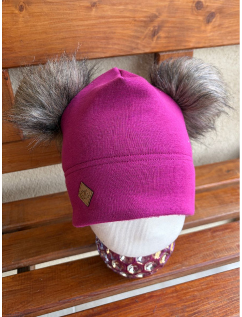Warmkeeper plytká čiapka s 2 bombuľami - dvojvrstvová - ostružina