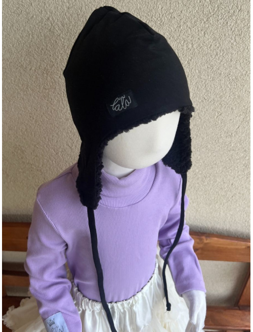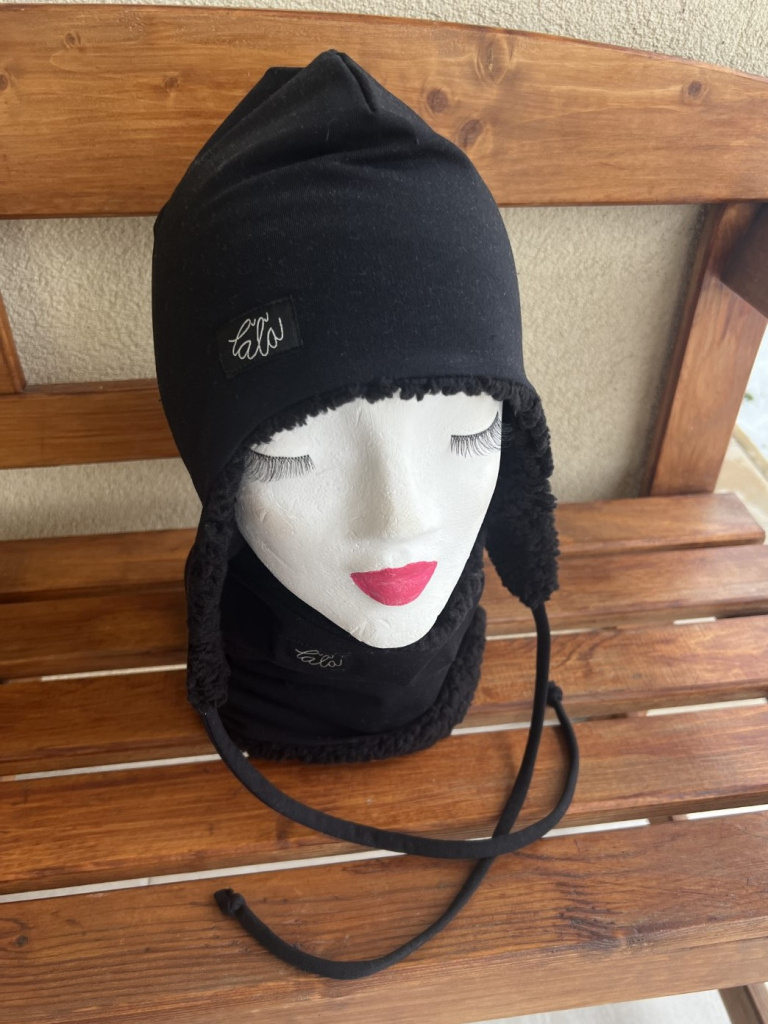 Tepláková ušiačka podšitá barančekom - dvojvrstvová - čierna