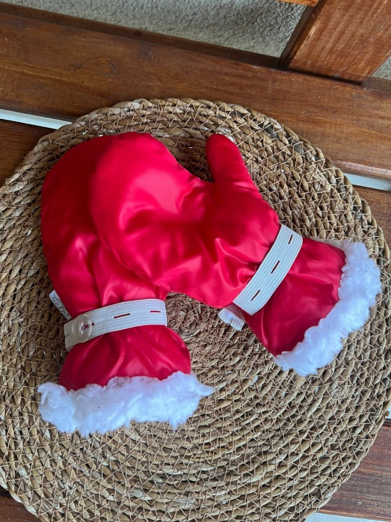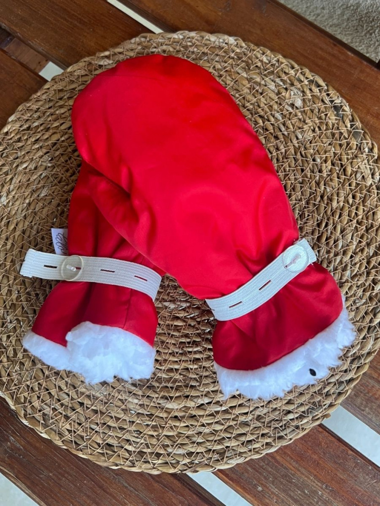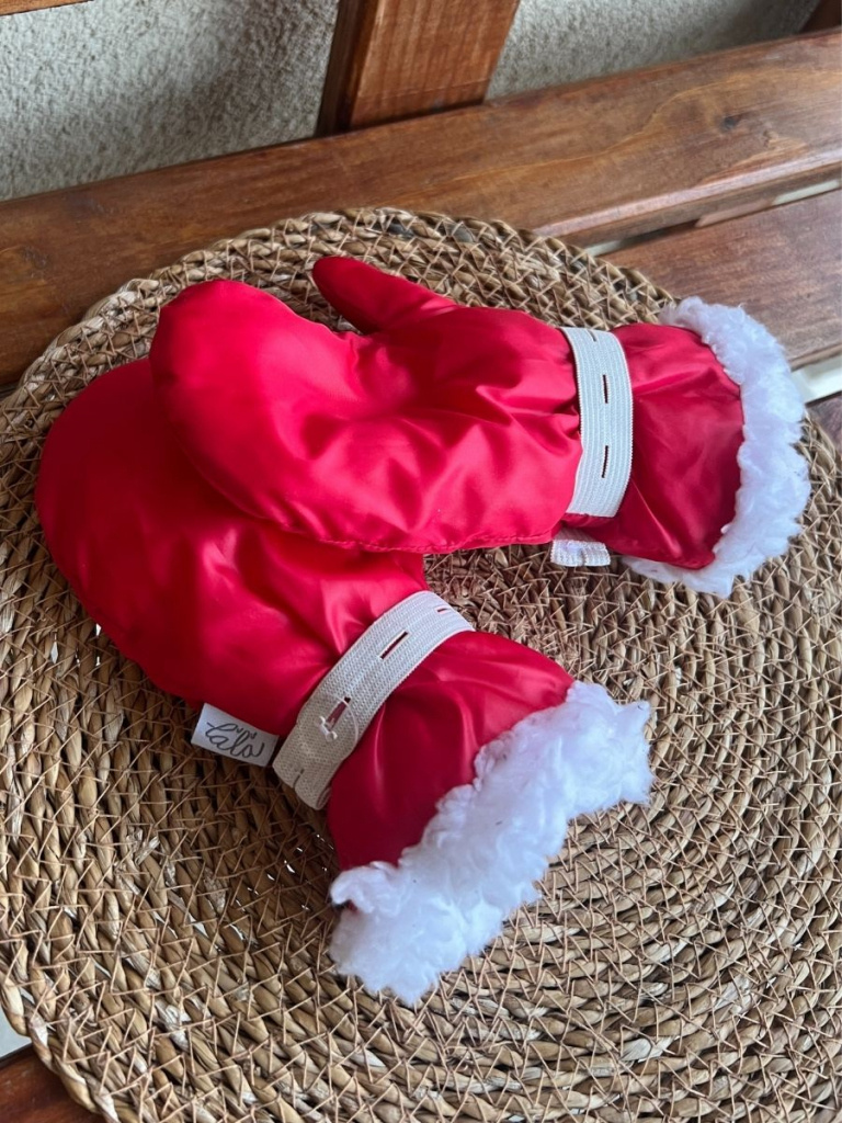 Červené matné šuštiakové rukavice podšité barančekom. Na zápästí je nastaviteľná guma pre pohodlnejšie obliekanie a následné stiahnutie.
