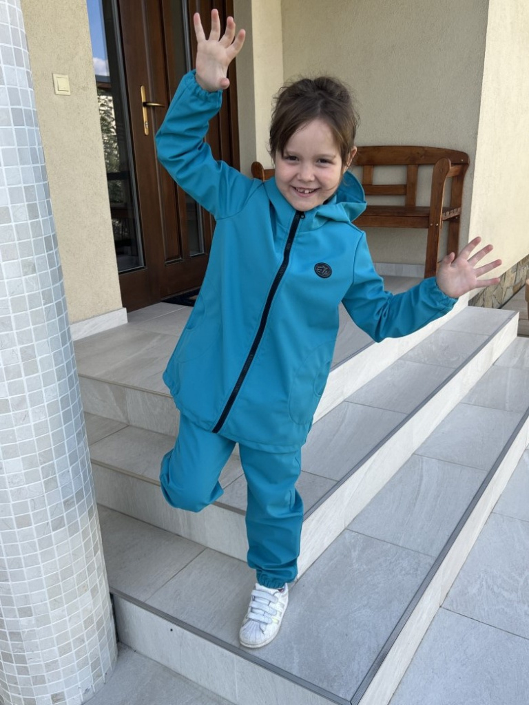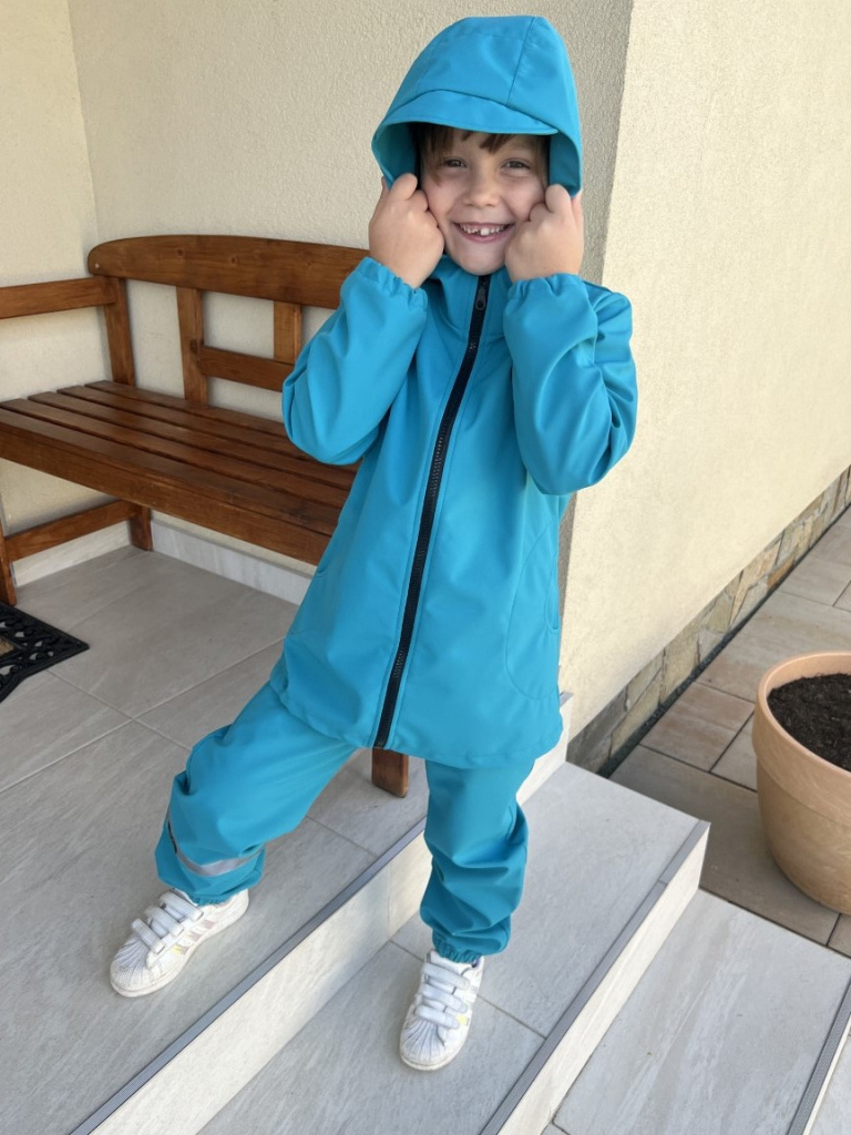 Prechodná sofshellová bundička je ušitá z jednej vrstvy jesenného softshellu. Je ušitá v praktickom predĺženom strihu s oválnymi funkčnými vreckami. Kapucňa je so stojačikom a šiltom, čiže parádne kryje krk pred vetrom. Je vhodná do sychravého daždivého počasia. Celá bundička je navrhnutá tak, aby poslúžila aj ako pršiplášť, a tiež ako štýlová bundička.