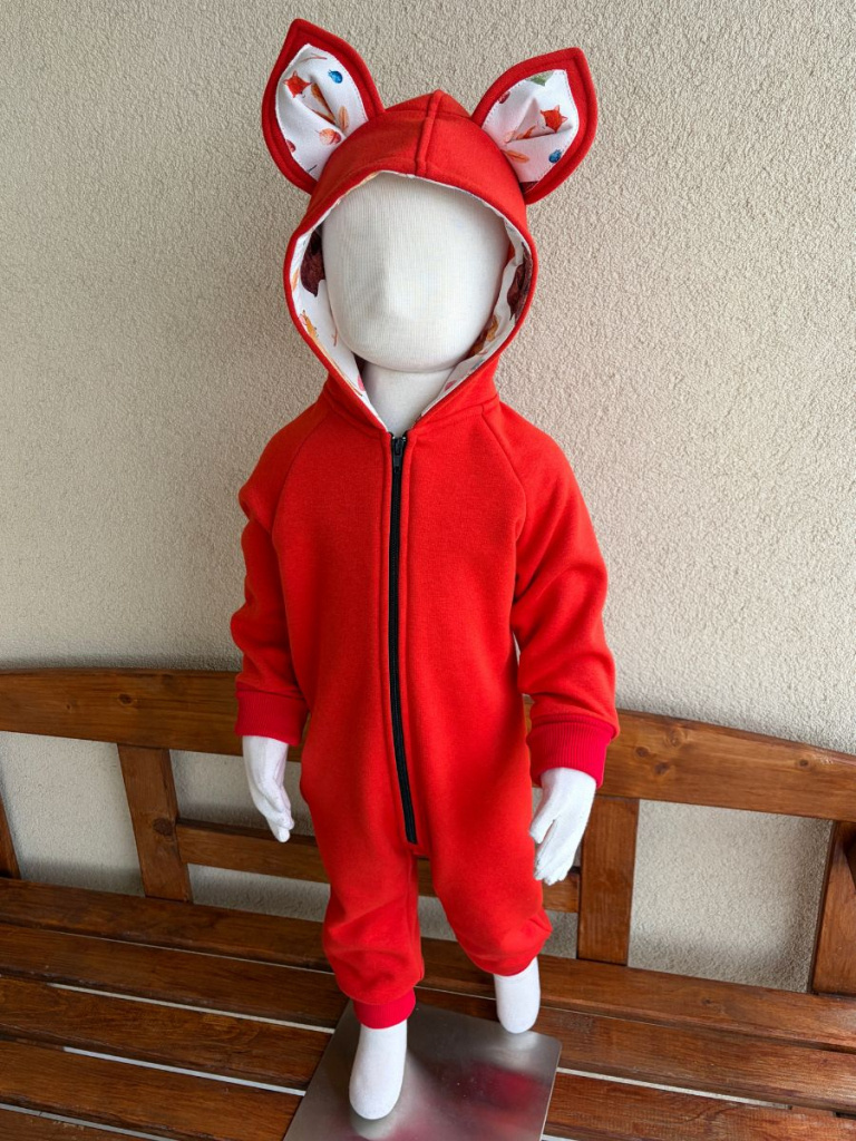 Overal - warmkeeper - MAČKA/LÍŠKA/VLK - tehlová + vzor