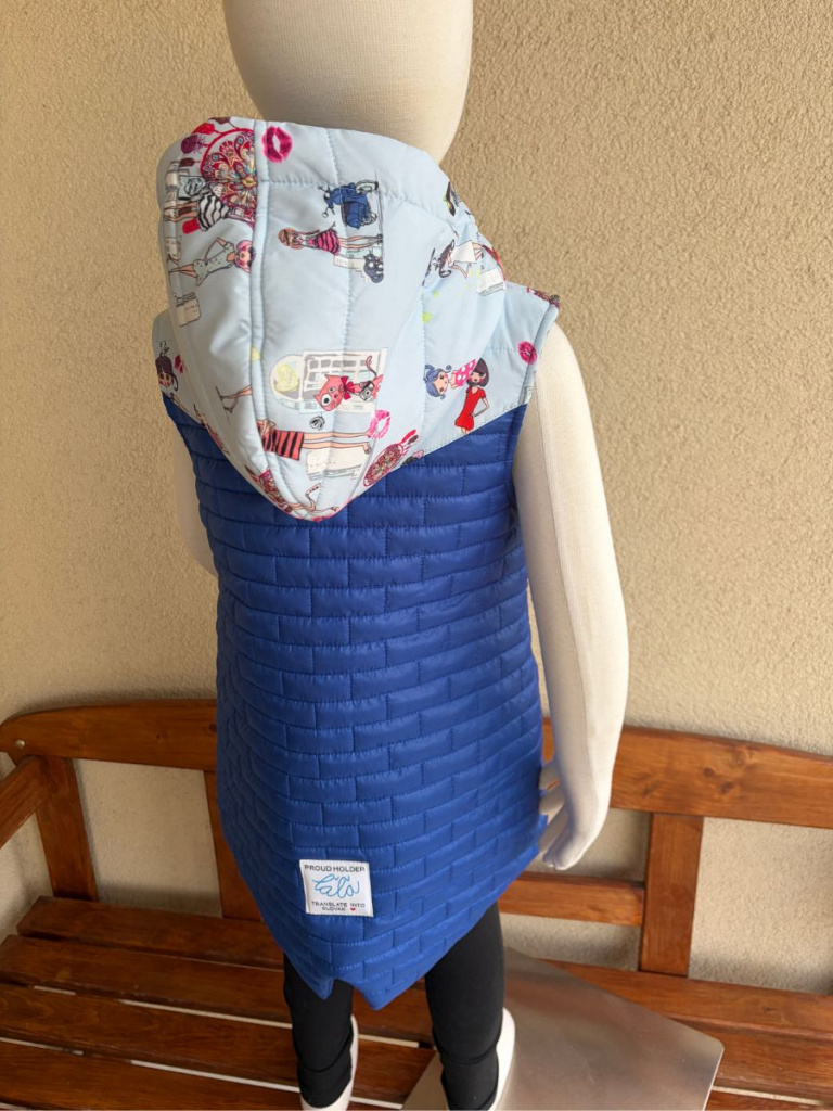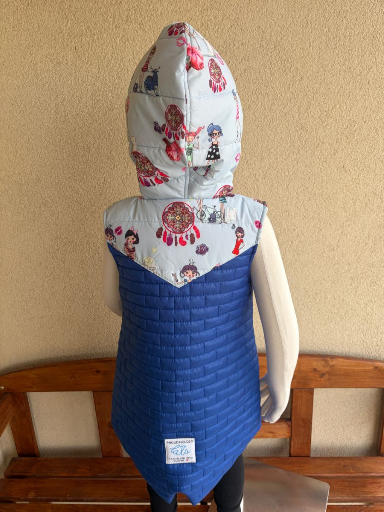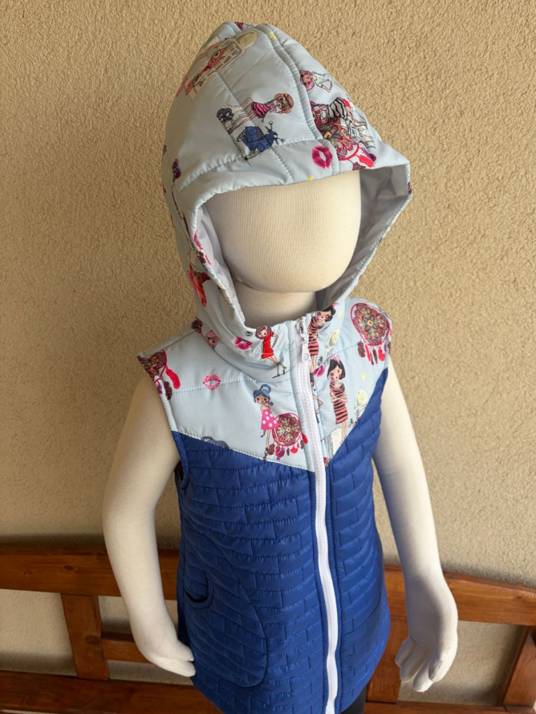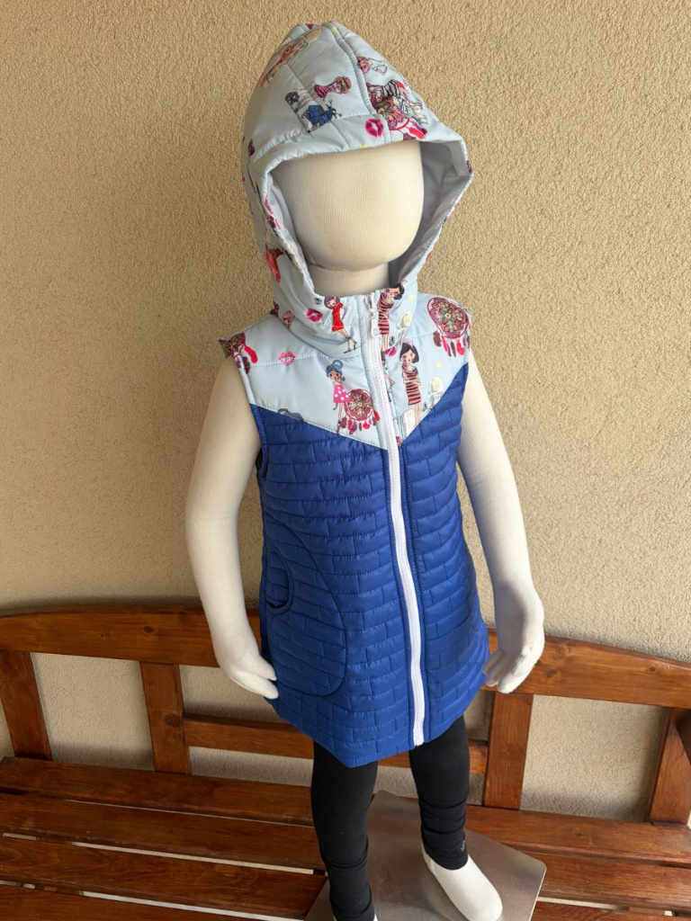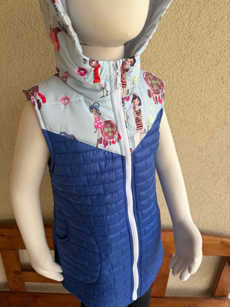 Rastúca vesta so stojačikovou kapucňou z prešiváku - DOMI - kombinovaná - POSLEDNÝ KUS