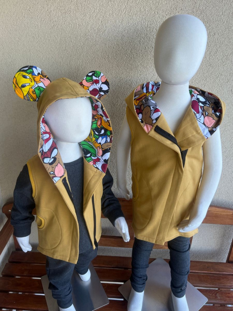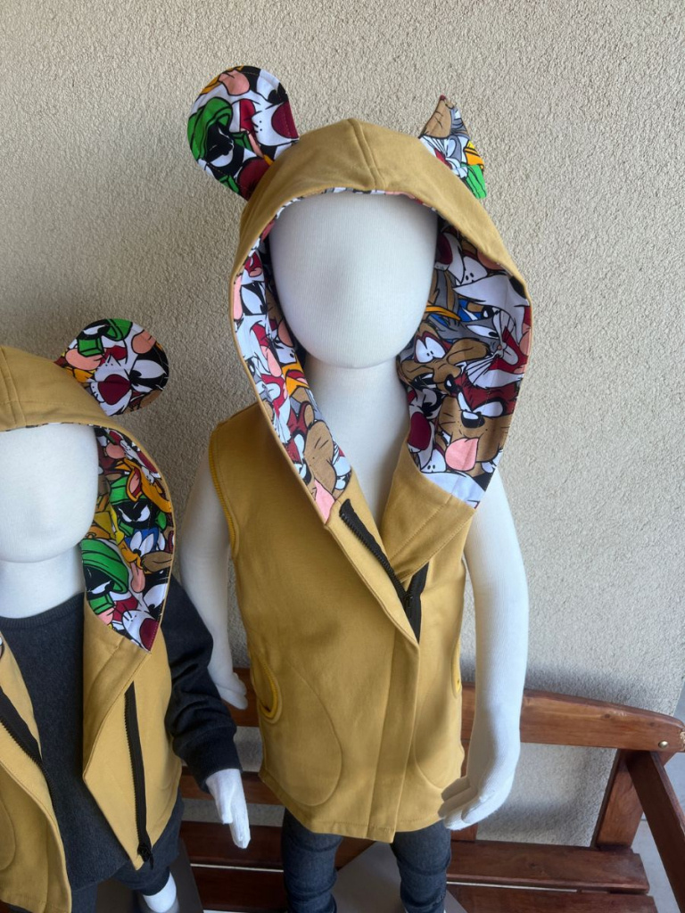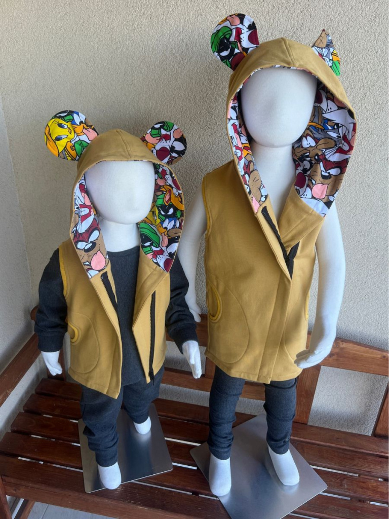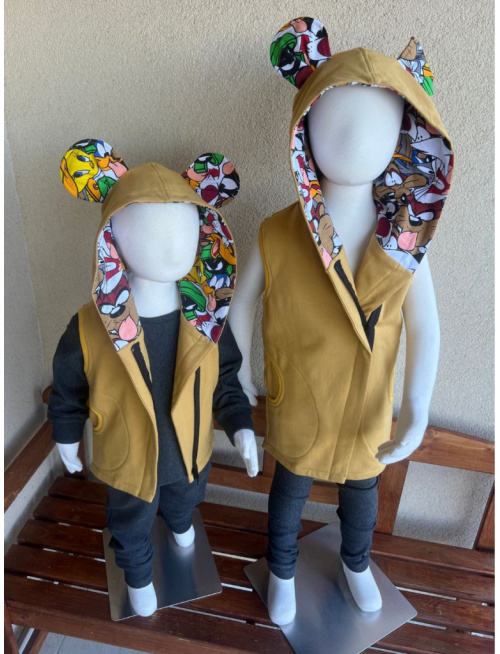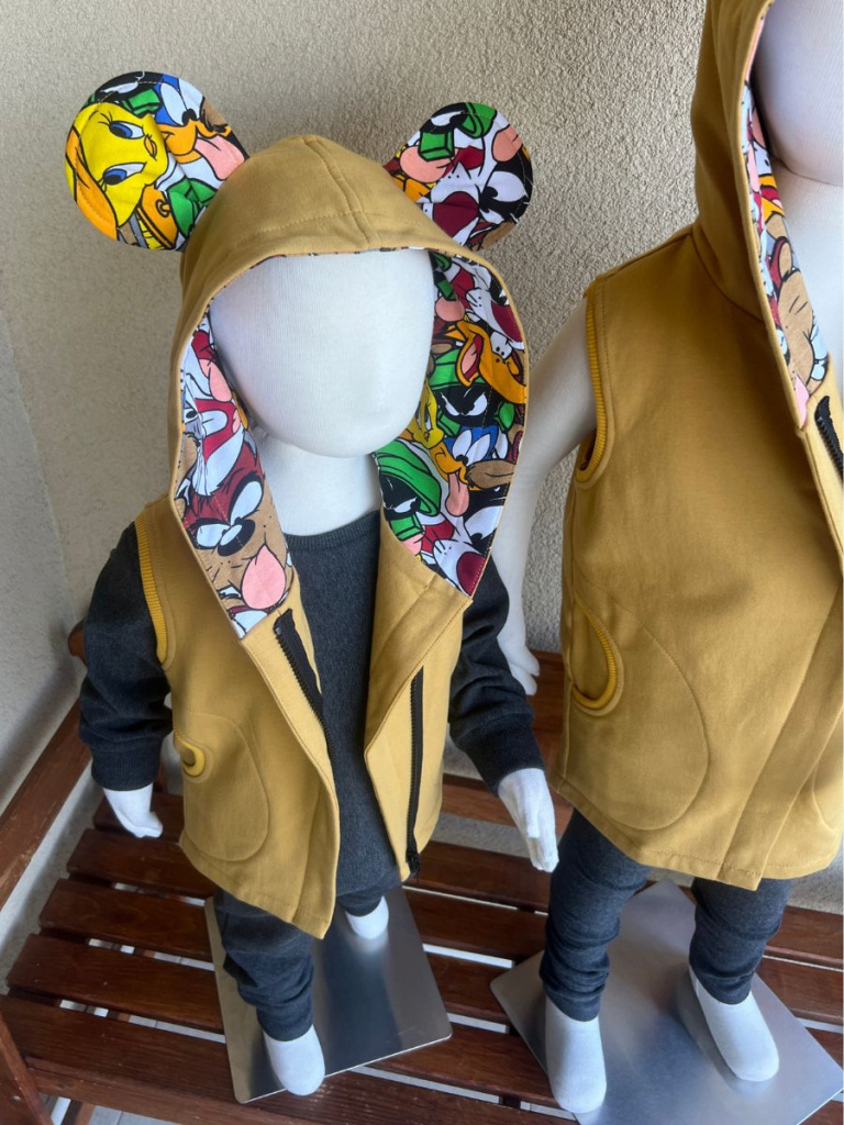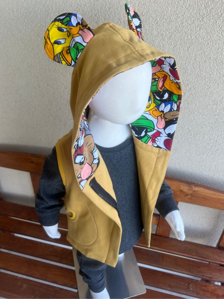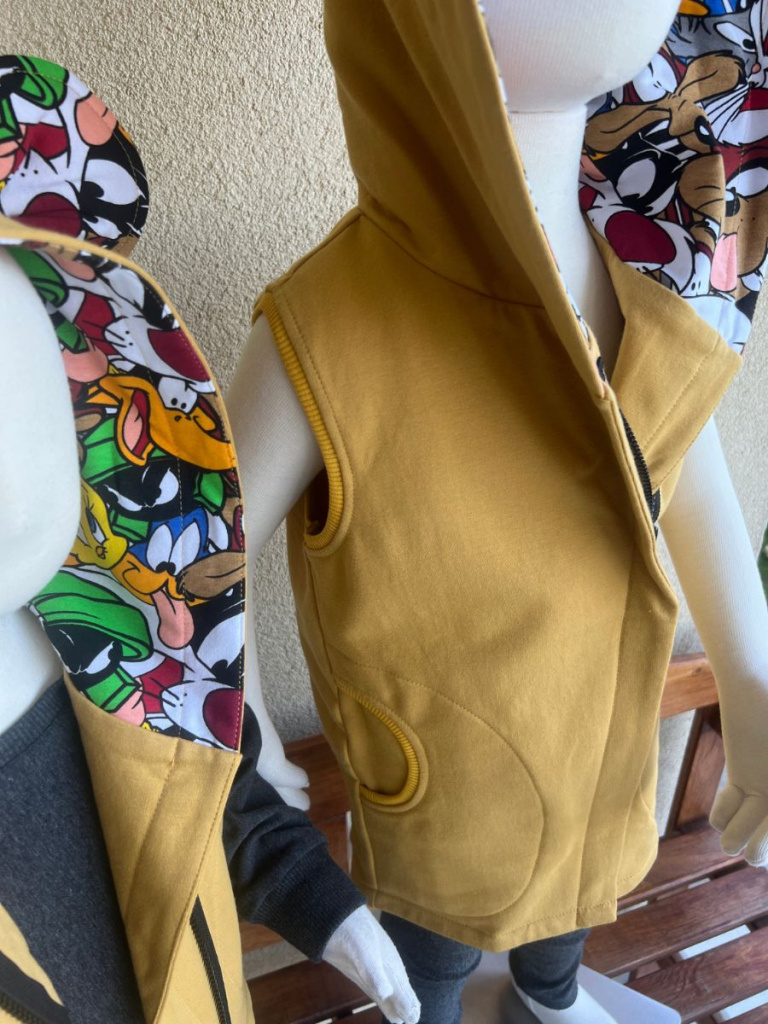 Extra prepracovaná jednovrstvová PARMA vesta so vzorovanými uškami a vnútrom kapucne. Vestička má vrecká.