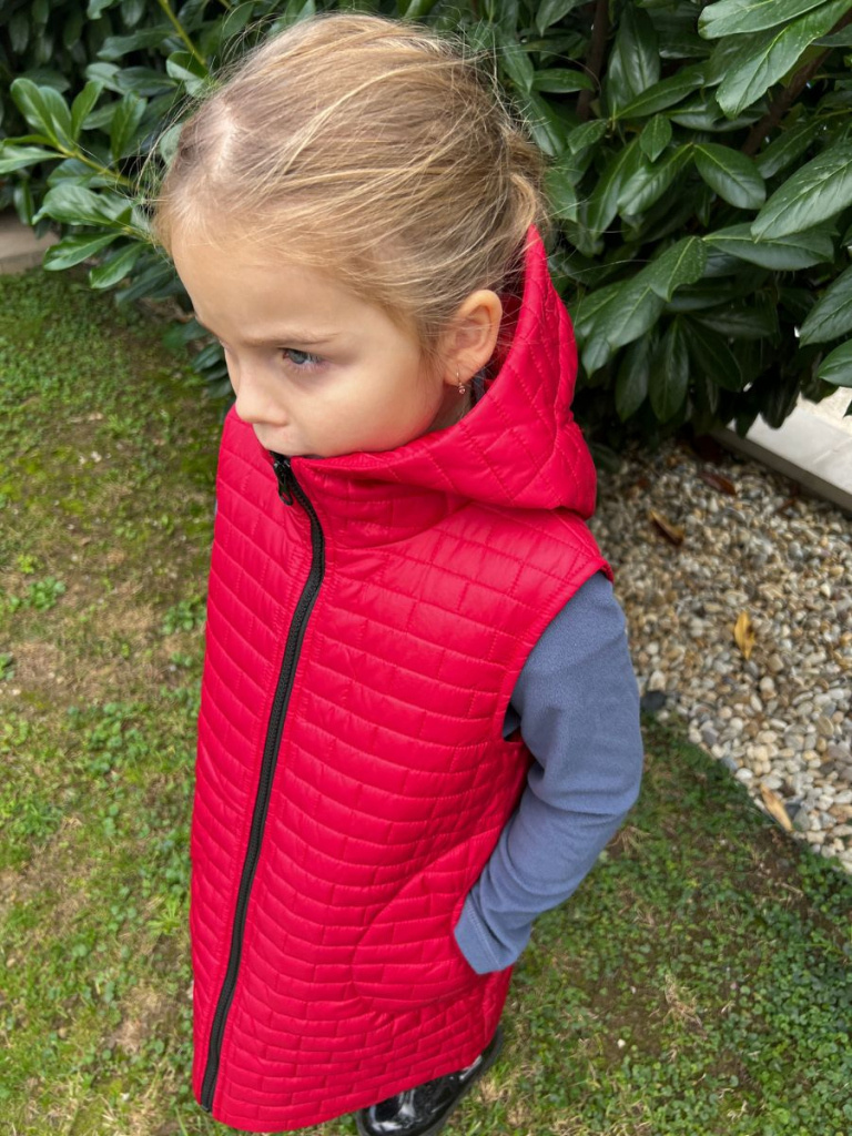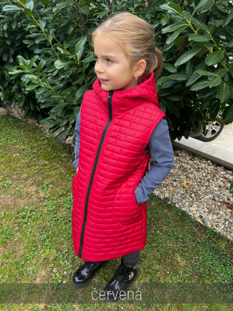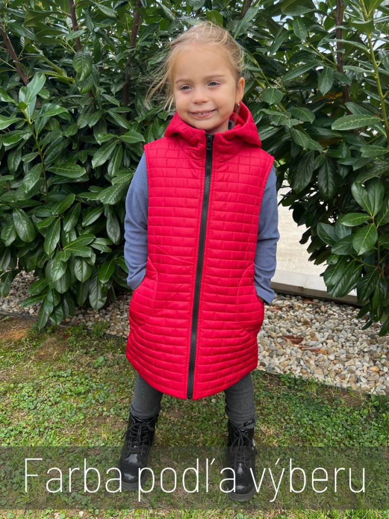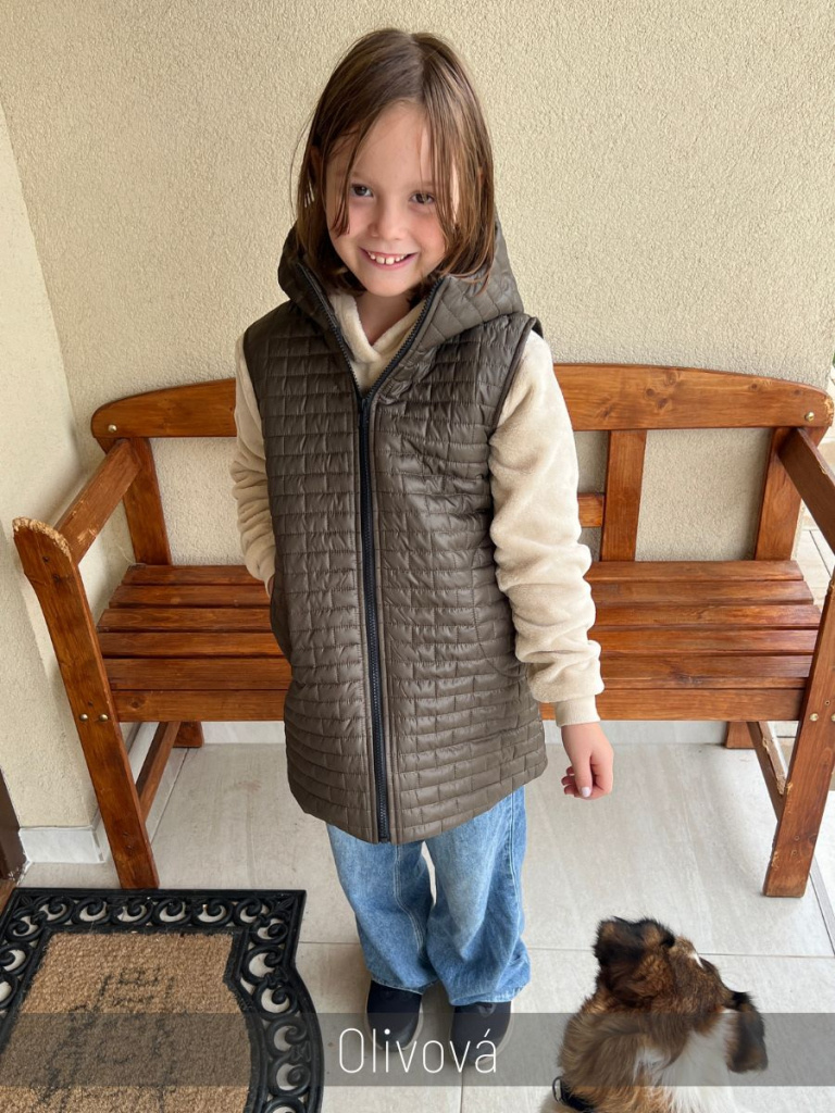 Rastúca vesta s rovnozipsom a stojačikovou kapucňou - prešivák podšitý podšívkou - DOMI