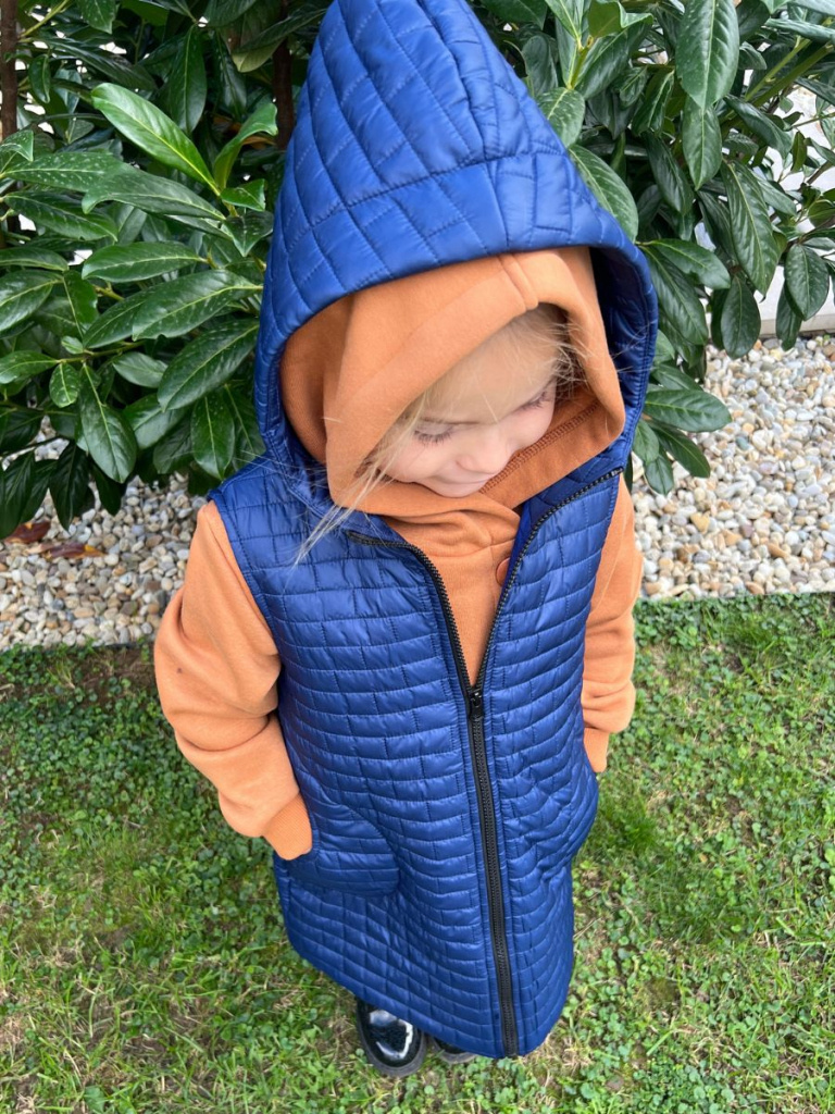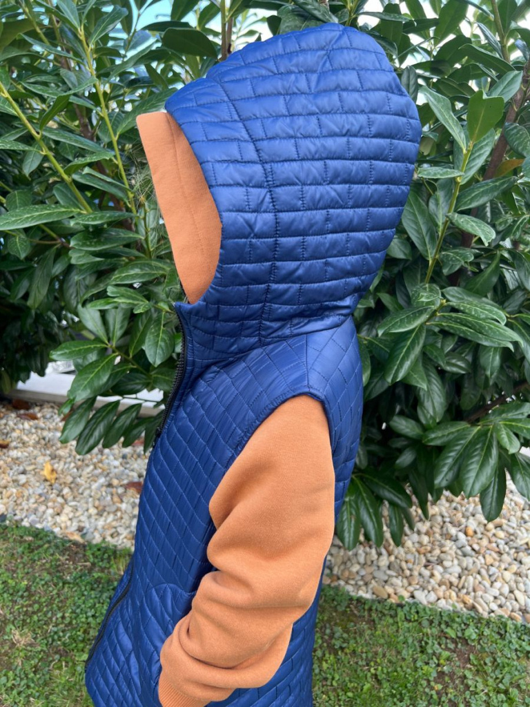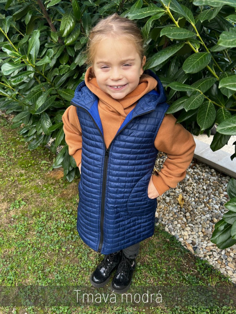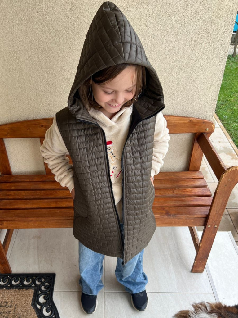 Rastúca vesta s rovnozipsom a stojačikovou kapucňou - prešivák podšitý podšívkou - DOMI