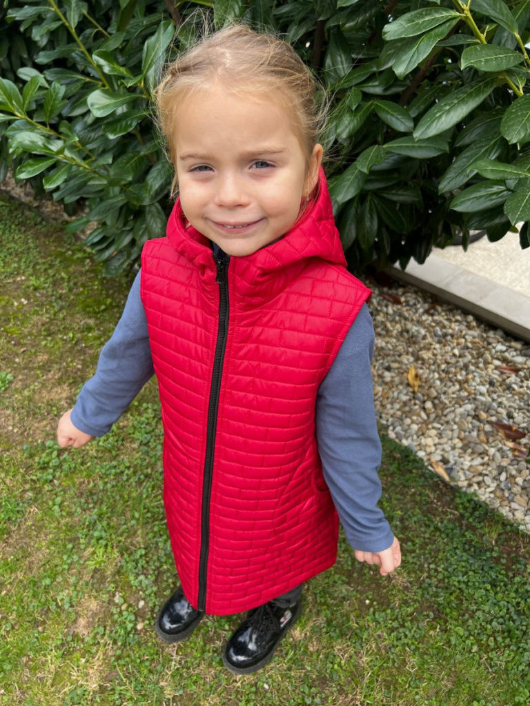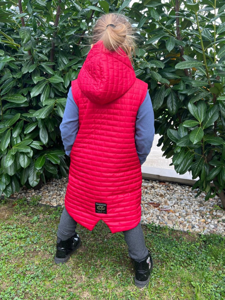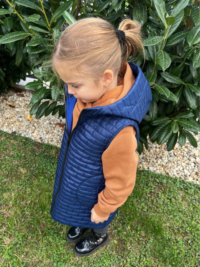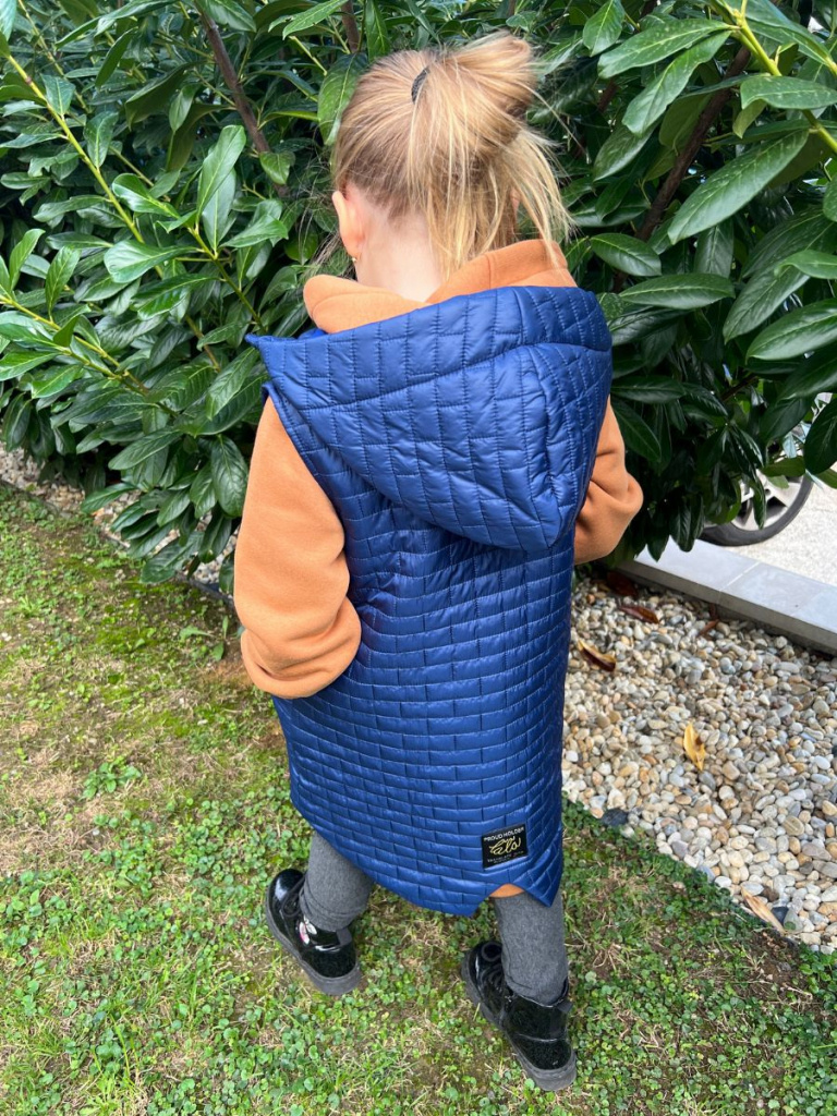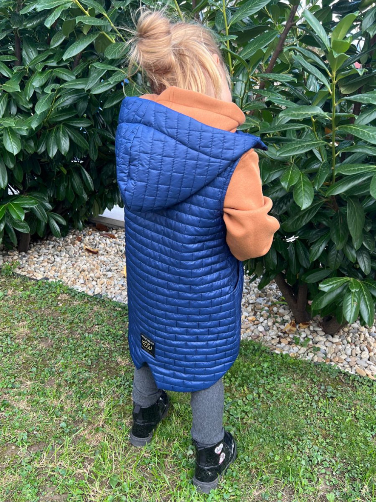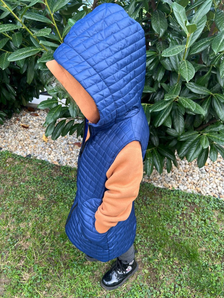 UPOZORNENIE: Okrem predvolenej farby, ktorá je na fotke, si môžete vybrať aj inú farbu vestičky z nášho vzorkovníka - prešivák jednofarebný. Vestu vo vami vybranej farbe vám s radosťou ušijeme. :)